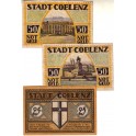 LOTE FORMADO POR 3 NOTGELD ALEMANES DEL AÑO 1921 DE LA LOCALIDAD DE COBLENZ. INTERESANTE. COMERCIAL. CALIDAD MEDIA: MBC+.