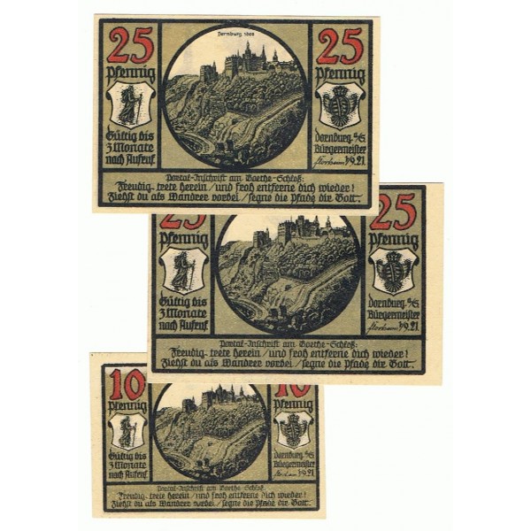 LOTE FORMADO POR 3 NOTGELD ALEMANES DEL AÑO 1921 DE LA LOCALIDAD DE DORNBURG.
