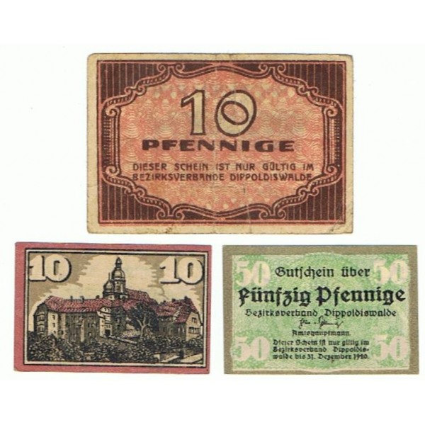 LOTE FORMADO POR 3 NOTGELD ALEMANES DEL AÑO 1920 DE LA LOCALIDAD DE DIPPOLDISWALDE.