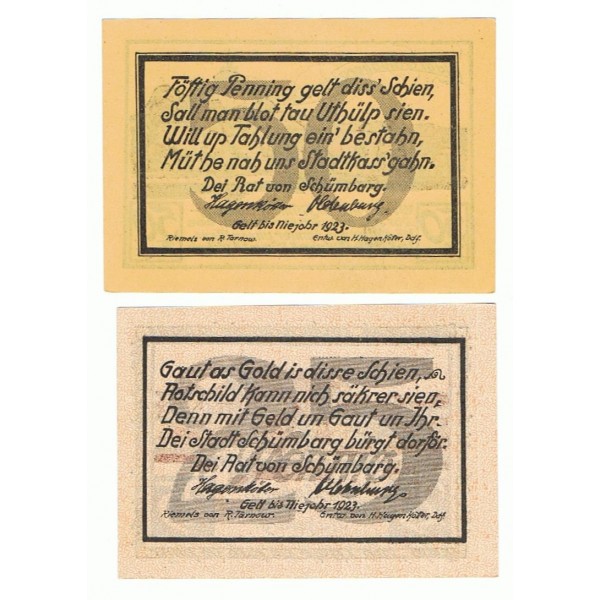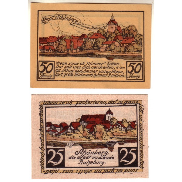 LOTE FORMADO POR 2 NOTGELD ALEMANES DEL AÑO 1923 DE LA LOCALIDAD DE SCHÖNBERG.