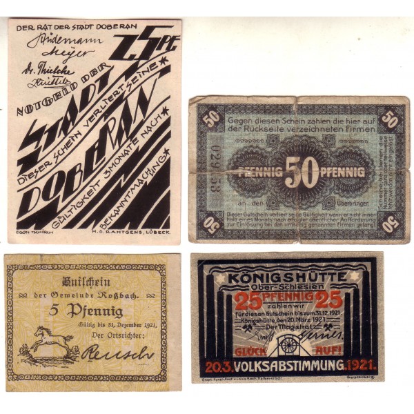 LOTE FORMADO POR 4 NOTGELD ALEMANES.