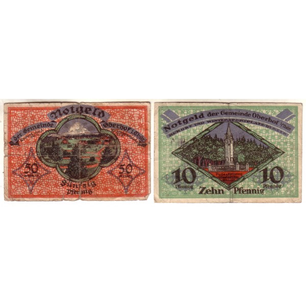 LOTE FORMADO POR 2 NOTGELD ALEMANES DEL AÑO 1919 DE LA LOCALIDAD DE OBERHOF.
