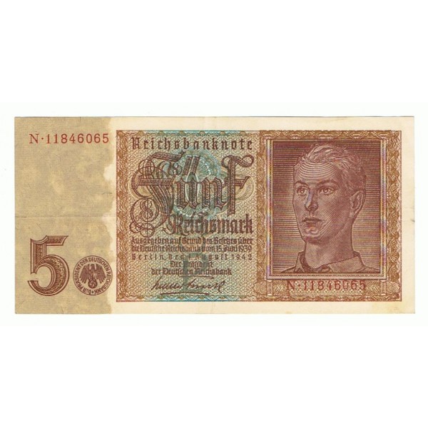 BILLETE ALEMÁN DE 5 REICHSMARK DEL AÑO 1942.