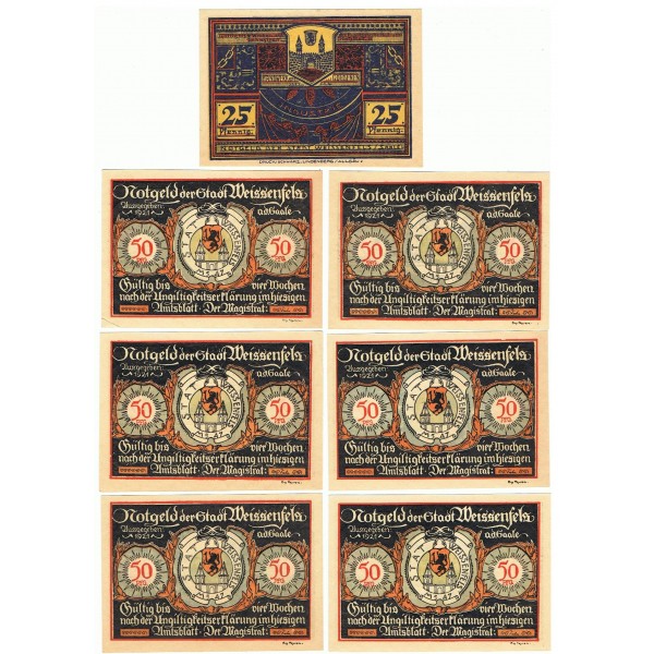 LOTE FORMADO POR 7 BILLETES NOTGELD DE ALEMANIA DEL AÑO 1921 DE LA LOCALIDAD DE WEISSENFELS.
