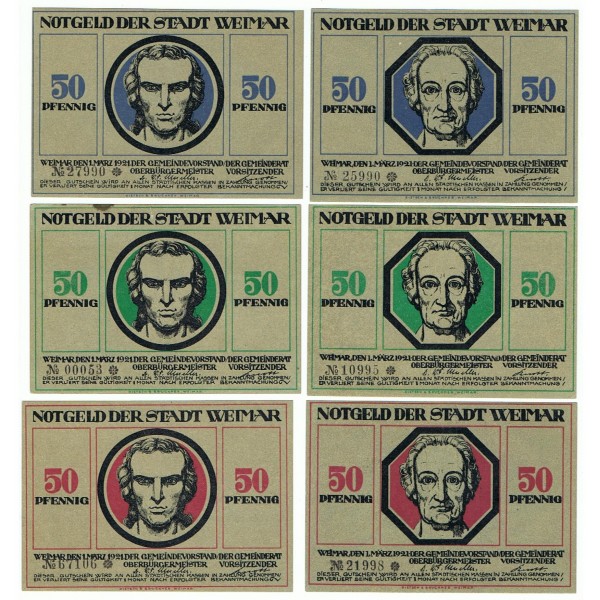 LOTE FORMADO POR 6 NOTGELD DE 50 PFENNIG DE ALEMANIA DEL AÑO 1921 DE LA LOCALIDAD DE WEIMAR.