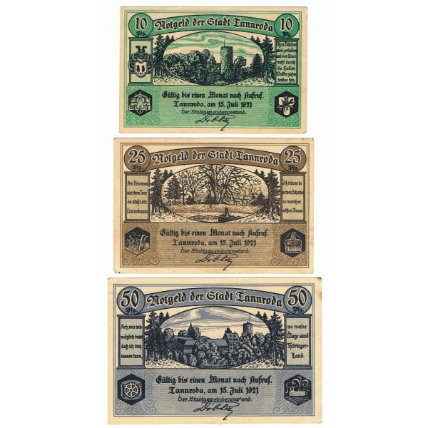 LOTE FORMADO POR 3 BILLETES NOTGELD DE ALEMANIA DEL AÑO 1921 DE LA LOCALIDAD DE TANNRODA.