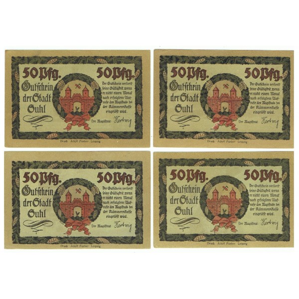 LOTE FORMADO POR 4 NOTGELD DE 50 PFENNIG DE ALEMANIA DE LA LOCALIDAD DE GUHL.