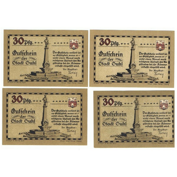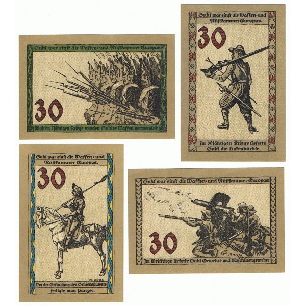 LOTE FORMADO POR 4 NOTGELD DE 30 PFENNIG DE ALEMANIA DE LA LOCALIDAD DE GUHL.