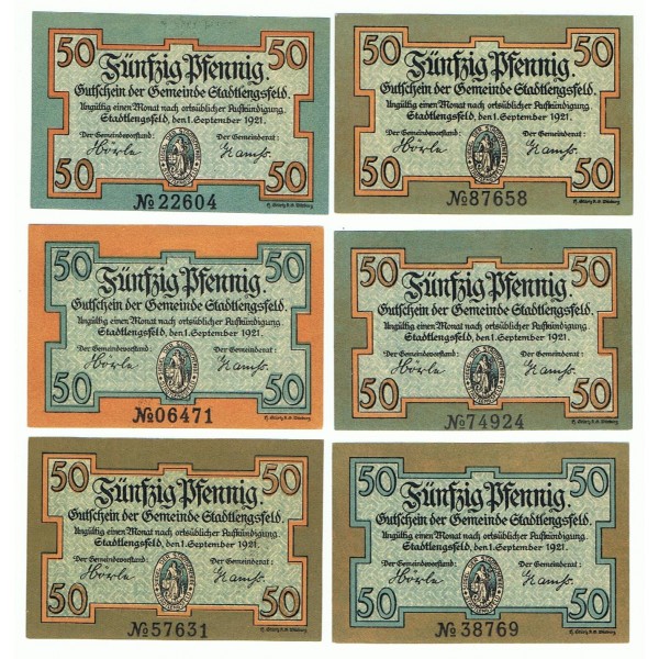 LOTE FORMADO POR 6 NOTGELD DE 50 PFENNIG DE ALEMANIA DEL AÑO 1921 DE LA LOCALIDAD DE STADTLENGSFELD.