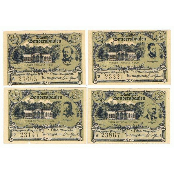 ALEMANIA LOTE 4 NOTGELD 50 PFENNIG 1921 SONDERSHAUSEN