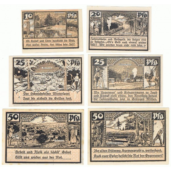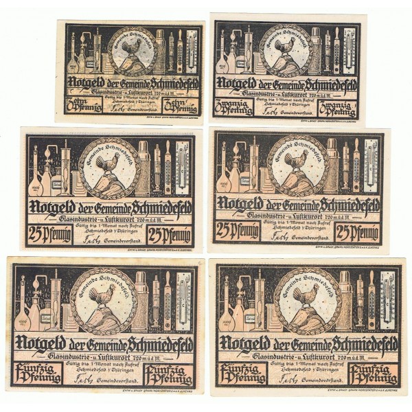 LOTE FORMADO POR 6 NOTGELD DE ALEMANIA DE LA LOCALIDAD DE SCHMIEDEFELD.