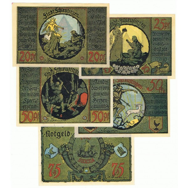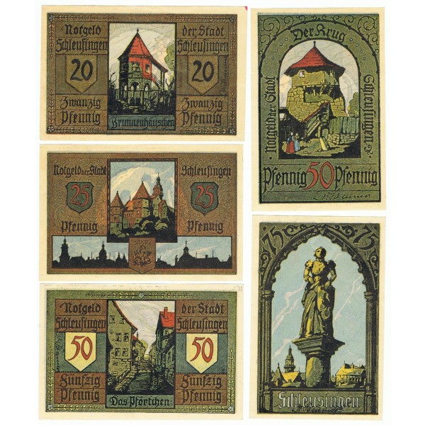 LOTE FORMADO POR 5 NOTGELD DE ALEMANIA DE LA LOCALIDAD DE SCHLEUSINGEN.
