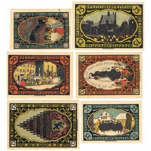 LOTE FORMADO POR 6 NOTGELD DE ALEMANIA DE LA LOCALIDAD DE PÖSSNECK.
