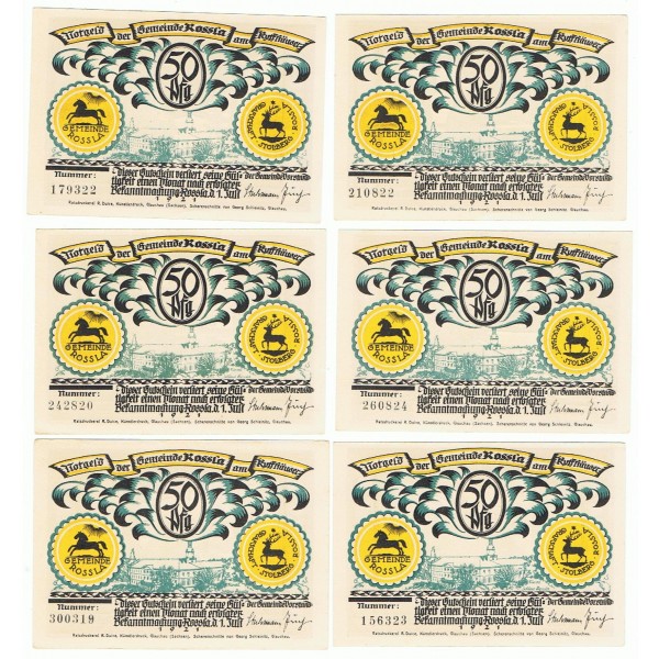 ALEMANIA LOTE 6 NOTGELD 50 PFENNIG 1921 ROSSLA