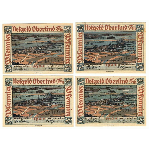 ALEMANIA LOTE 4 NOTGELD 50 PFENNIG 1921 OBERLIND