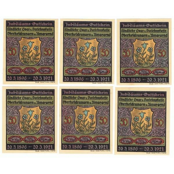 ALEMANIA LOTE 6 NOTGELD 50 PFENNIG 1921 OBERHELDRUNGEN