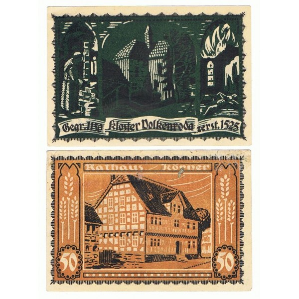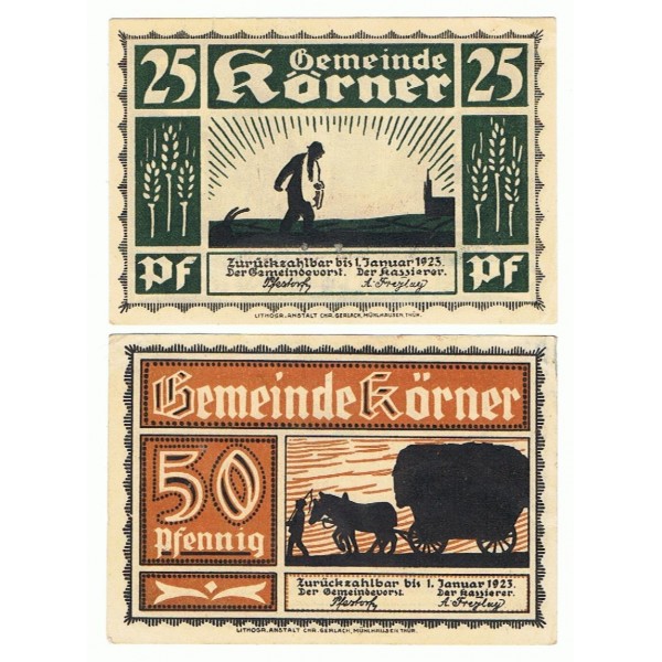 LOTE FORMADO POR 2 NOTGELD DE ALEMANIA DEL AÑO 1923 DE LA LOCALIDAD DE KORNER.