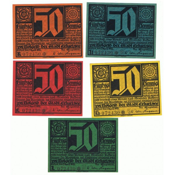 ALEMANIA LOTE 5 NOTGELD 50 PFENNIG 1921 ERFURT