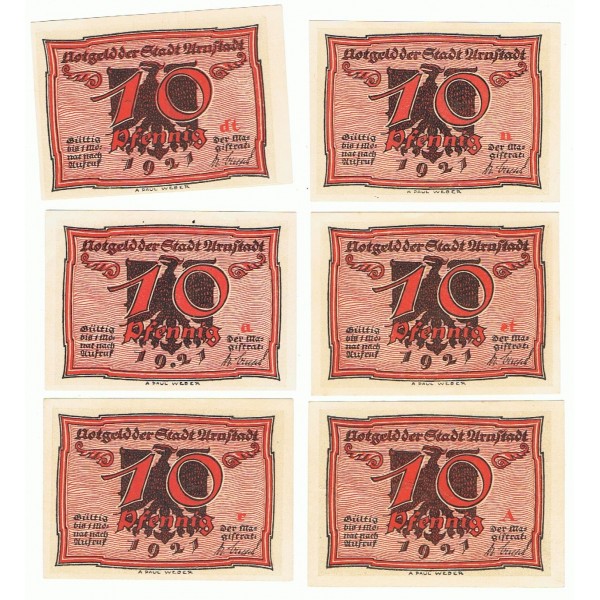 ALEMANIA LOTE 6 NOTGELD 10 PFENNIG 1921 ARNSTADT