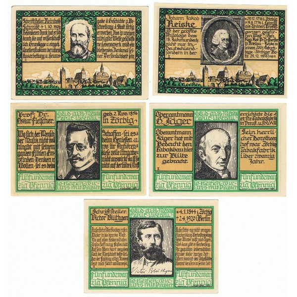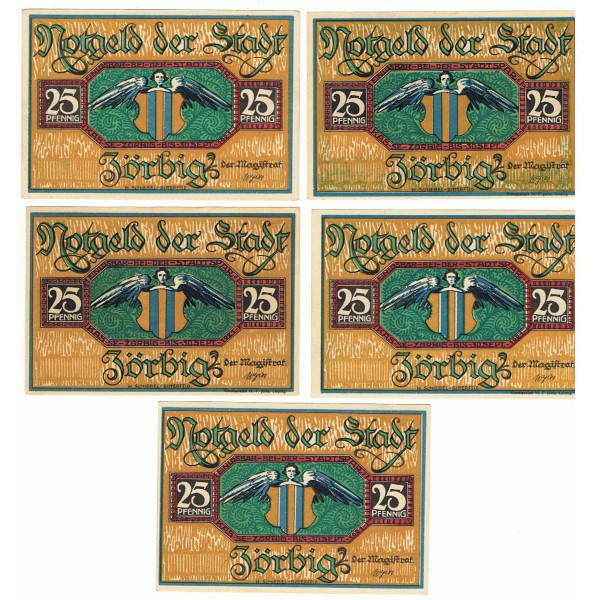 ALEMANIA LOTE 5 NOTGELD 25 PFENNIG ZÖRBIG