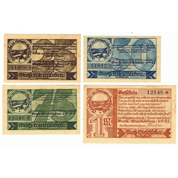 LOTE FORMADO POR 4 NOTGELD DE ALEMANIA DEL AÑO 1921 DE LA LOCALIDAD DE GROSS WIRSCHLEBEN.