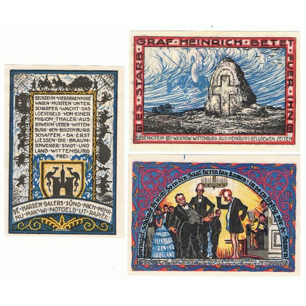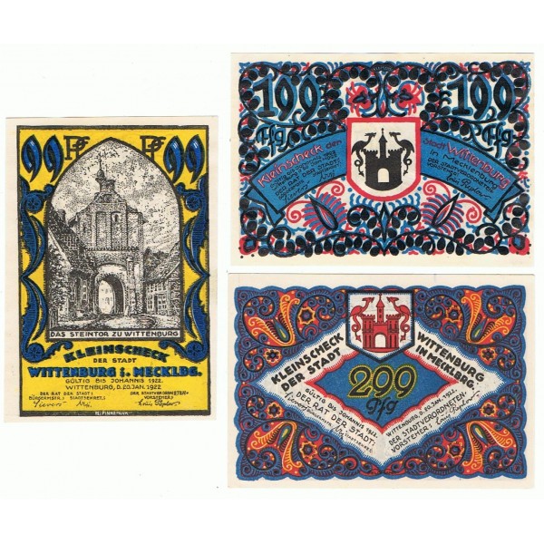 LOTE FORMADO POR 3 NOTGELD DE ALEMANIA DEL AÑO 1922 DE LA LOCALIDAD DE WITTENBURG.