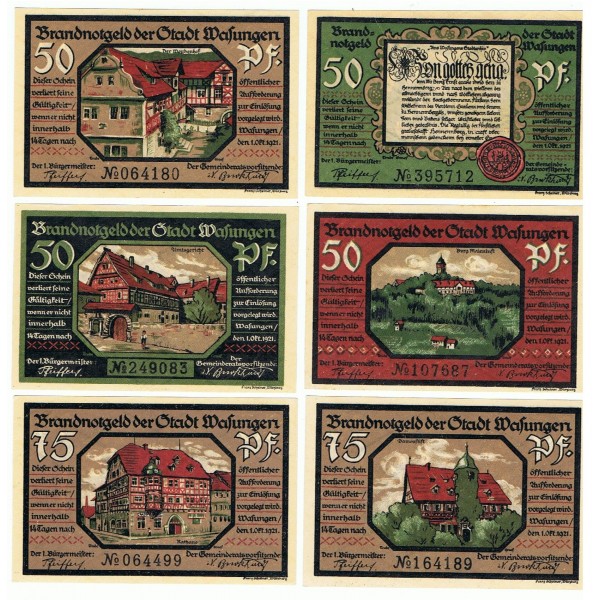 LOTE FORMADO POR 6 NOTGELD DE ALEMANIA DEL AÑO 1921 DE LA LOCALIDAD DE WASUNGEN.
