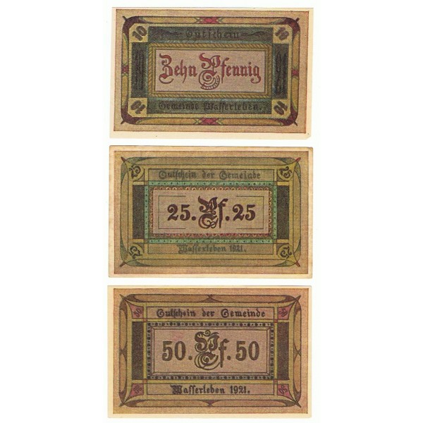 LOTE FORMADO POR 3 NOTGELD DE ALEMANIA DEL AÑO 1921 DE LA LOCALIDAD DE WASSERLEBEN.