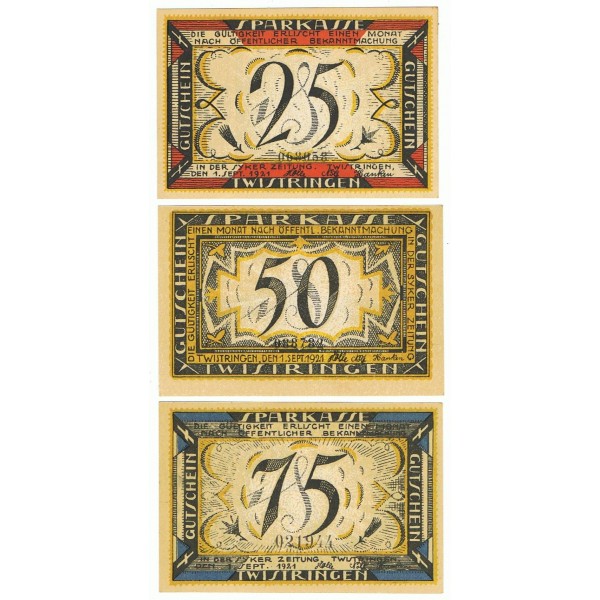LOTE FORMADO POR 3 NOTGELD DE ALEMANIA DEL AÑO 1921 DE LA LOCALIDAD DE TWISTRINGEN.