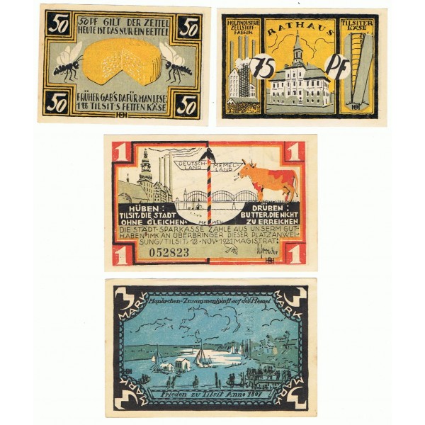 LOTE FORMADO POR 4 NOTGELD DE ALEMANIA DEL AÑO 1921 DE LA LOCALIDAD DE TILSIT.