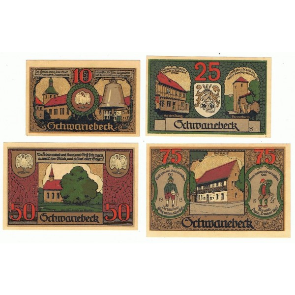 LOTE FORMADO POR 4 NOTGELD DE ALEMANIA DEL AÑO 1921 DE LA LOCALIDAD DE SCHWANEBECK.