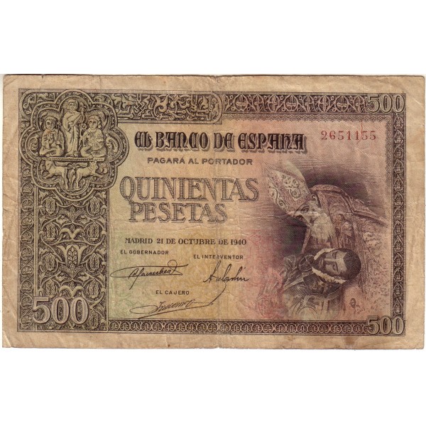 BILLETE DE 500 PESETAS DEL AÑO 1940 DEL CONDE DE ORGAZ.