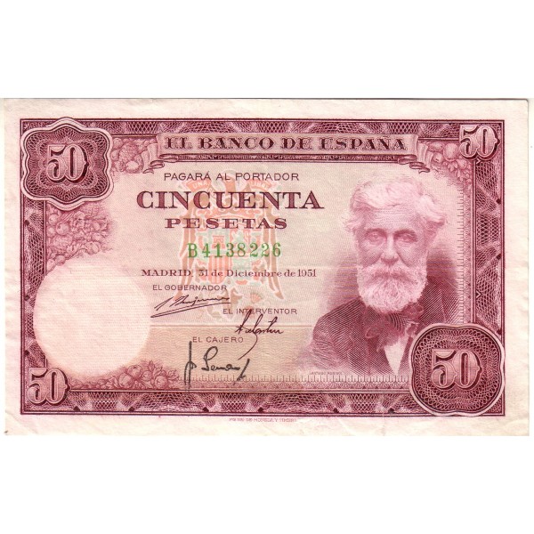 BILLETE DE 50 PESETAS DEL AÑO 1951 DE SANTIAGO RUSIÑOL.
