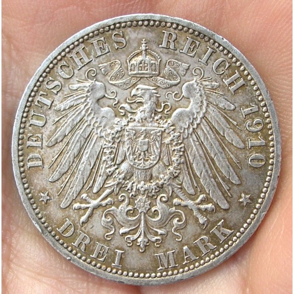 MONEDA DE PLATA DE ALEMANIA DE 3 MARK DEL AÑO 1910.