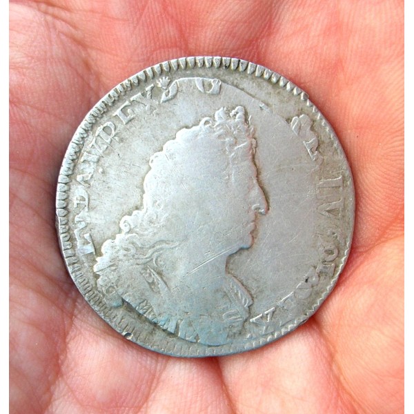 MONEDA DE PLATA DE FRANCIA DE 1/2 ECU DE LUIS XIV ACUÑADA EN EL AÑO 1704 sobre 1701 (doble acuñación).