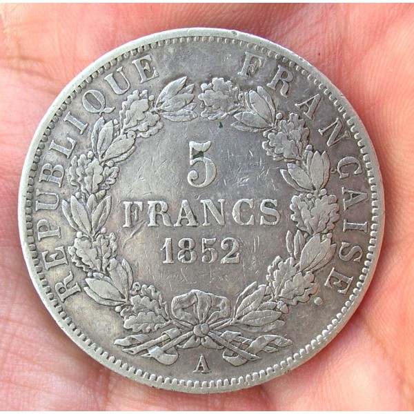 MONEDA DE PLATA DE FRANCIA DE 5 FRANCS DE LOUIS NAPOLEON BONAPARTE DEL AÑO 1852-A.