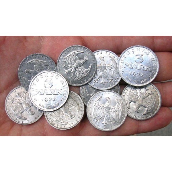 ALEMANIA LOTE 10 MONEDAS 3 MARK 1922