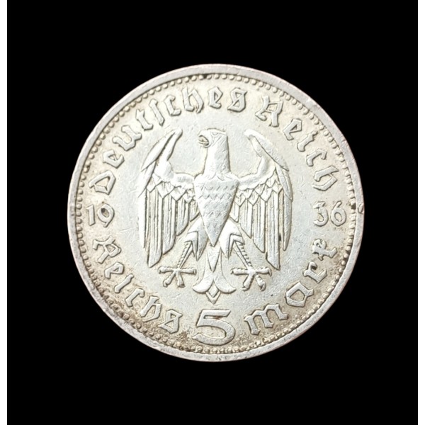 MONEDA DE PLATA DE ALEMANIA DE 5 REICHSMARK DEL AÑO 1936-D.