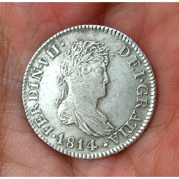 MONEDA DE PLATA DE 2 REALES DE FERNANDO VII ACUÑADA EN EL AÑO 1814 EN CATALUÑA -SF-.