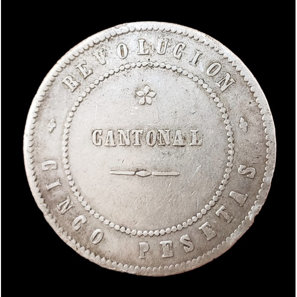 MONEDA DE PLATA DE 5 PESETAS ACUÑADA EN EL AÑO 1873. REVOLUCIÓN CANTONAL. CARTAGENA.