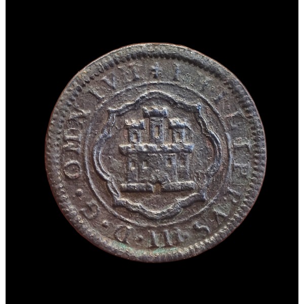 MONEDA DE 4 MARAVEDÍS DE FELIPE III ACUÑADA EN EL AÑO 1599 EN SEGOVIA.