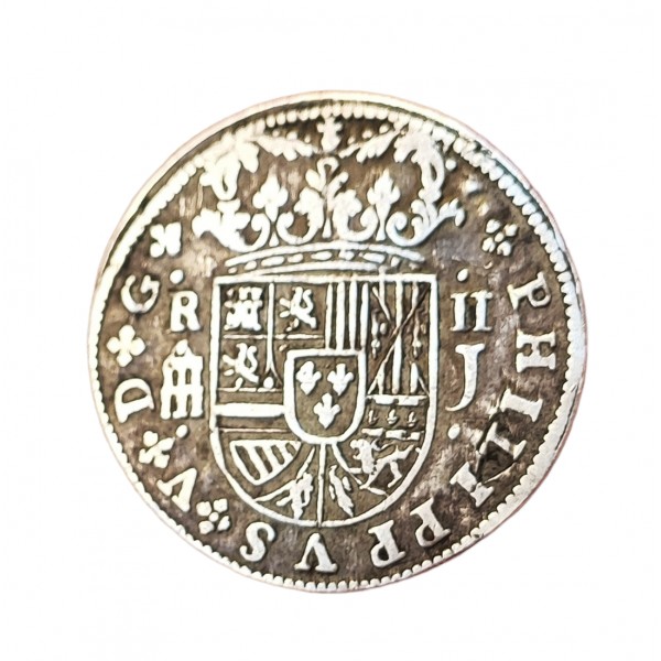 MONEDA DE PLATA DE 2 REALES DE FELIPE V ACUÑADA EN EL AÑO 1718 EN SEGOVIA -J-.