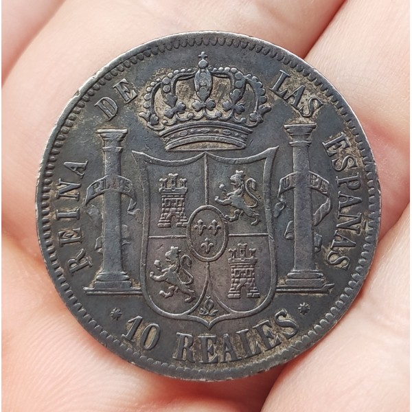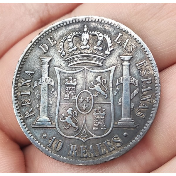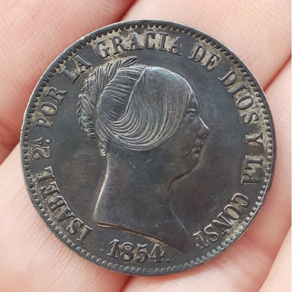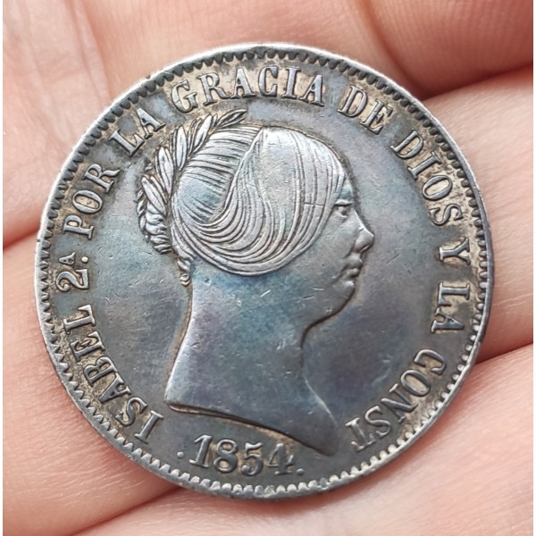 MONEDA DE PLATA DE 10 REALES DE ISABEL II ACUÑADA EN EL AÑO 1854 EN BARCELONA.