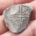 MONEDA DE PLATA DE 8 REALES MACUQUINOS ACUÑADA EN SEVILLA. AUTÉNTICA DE ÉPOCA. UTILIZADA COMO COLGANTE (INCLUYE ARO EN PLATA). DIÁMETRO: 25 mm. PESO MONEDA: 27,78 gr. PESO ARO: 6,54 gr.